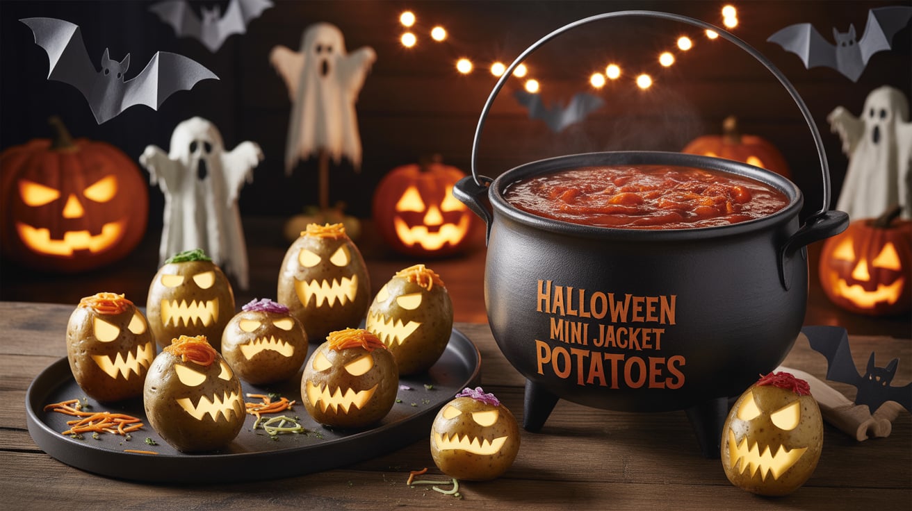 As the chilly October nights roll in, nothing sets the Halloween mood better than spooky, cozy food! These Halloween Mini Jacket Potatoes are cute, creepy, and incredibly easy to make — perfect for parties, family gatherings, or a fun kitchen project with kids.